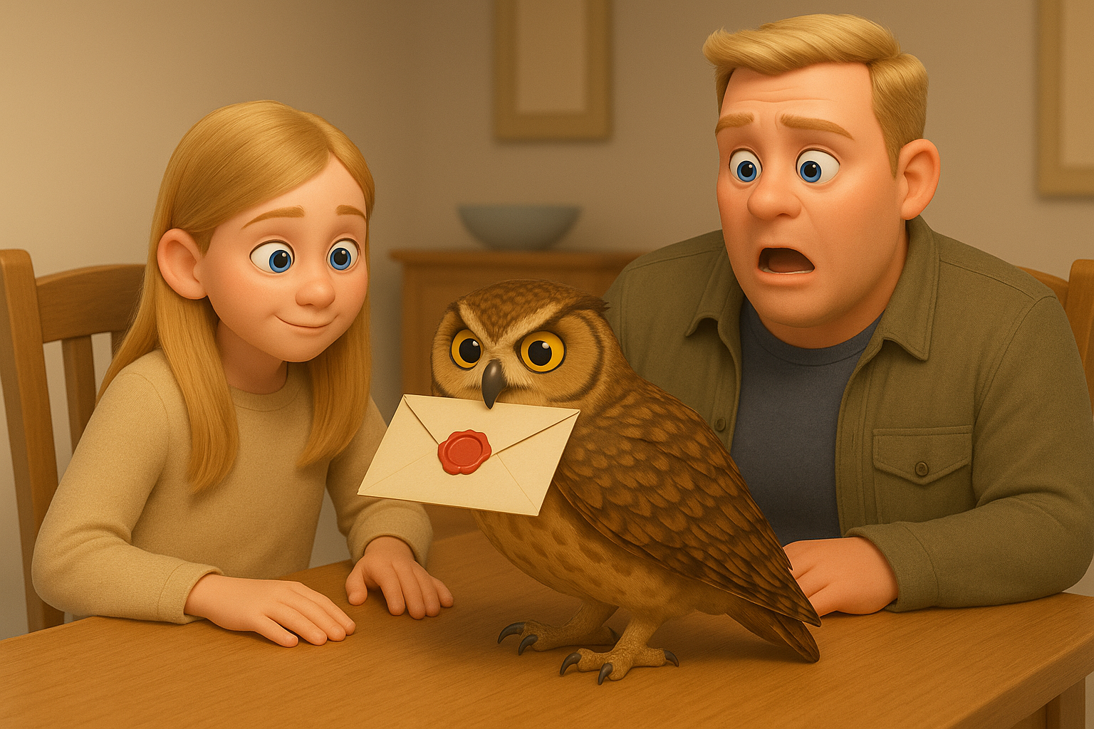 The owl swooped in, dropped a thick envelope onto Emma’s cereal, and flew out again without so much as an apology.